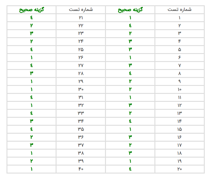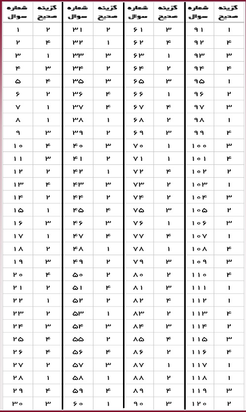سوالات ، كليد و پاسخ تشريحي تمام گرايش ها دفترچه شماره 1